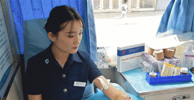 献血队伍中有临床医务人员,也有行政后勤人员,很多职工都是工作间隙前来献血,献完血又马上投入到紧张繁忙的工作当中。看着鲜红的血液沿着针头缓缓流入血袋,大家都面带笑容、热情满满,采血的现场气氛温馨而令人感动,大爱之心就这样传递开来……