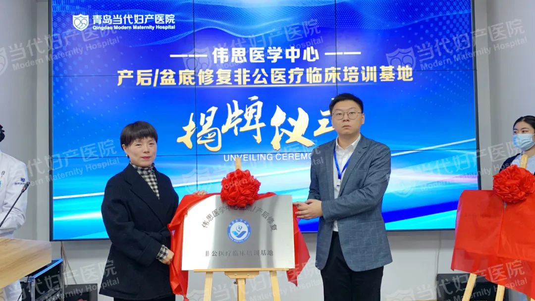为进一步提高盆底功能障碍诊治、防治、保健水平,助力女性朋友实现健康自由的幸福生活,2023年11月19日,青岛当代妇产医院——“伟思医学中心盆底/产后康复学术培训基地”“ADM-H生物束带临床应用示范基地”正式揭牌。