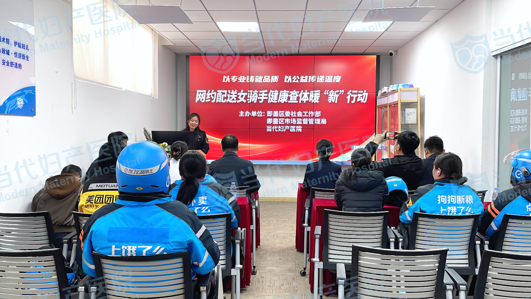 2025年3月6日,在"三八"女神节到来之际,即墨区委社会工作部、即墨区市场监督管理局联合当代妇产医院共同发起——网约配送女骑手健康查体暖“新”行动,特别邀请女骑手们走进当代妇产,共同学习女性健康知识,并在课程结束后为她们进行公益健康查体。