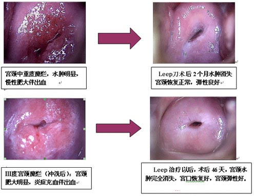 1、好疗效:治疗术后,6至8周宫颈恢复光滑,好如初。